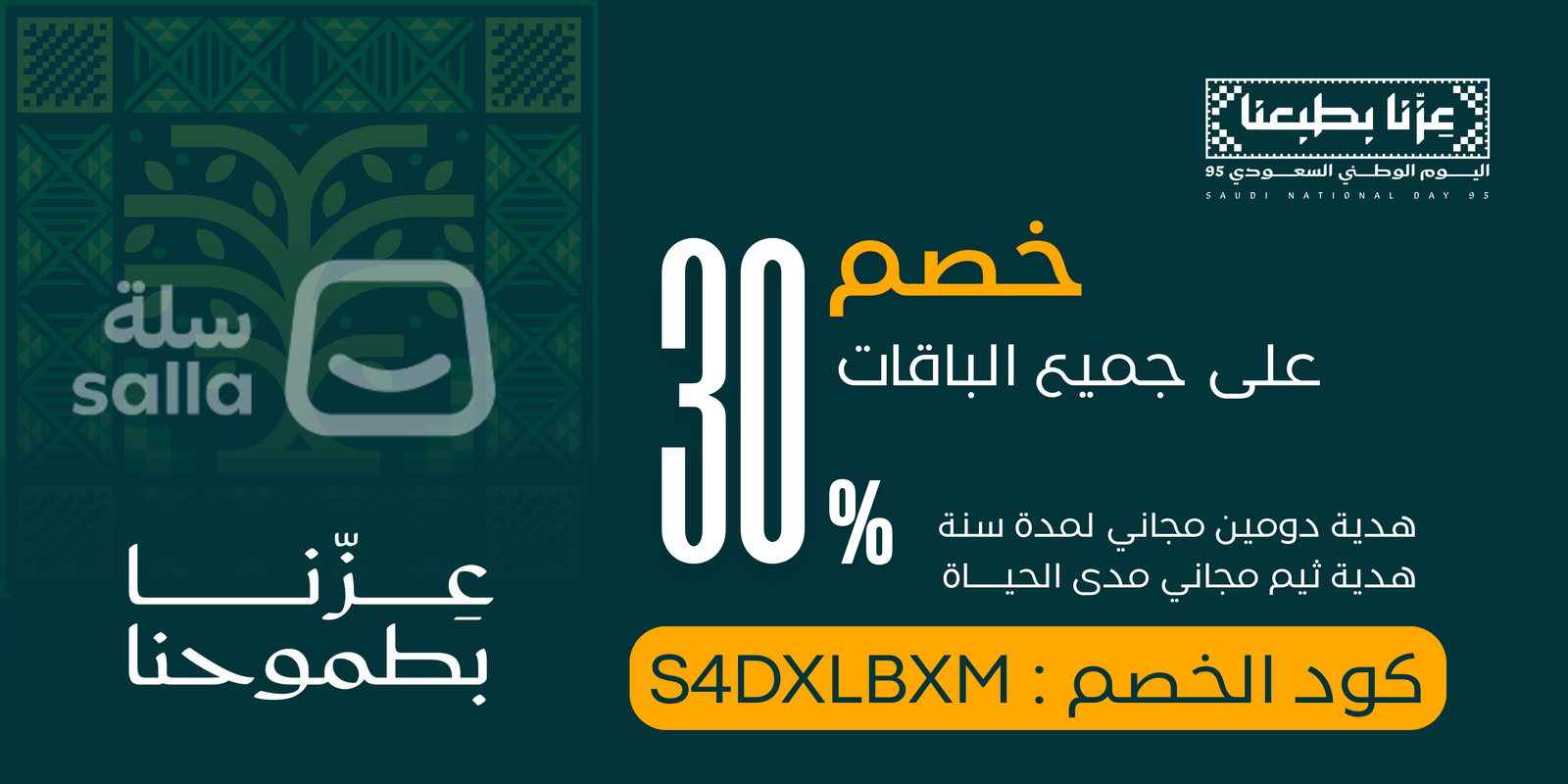 في يوم التأسيس السعودي 2026، تقدم سلة واحدة من أقوى حملات الخصم على الإطلاق. باستخدام كود خصم سلة S4DXLBXM، ستحصل على تخفيض مباشر عند الاشتراك في أي من باقاتها المدفوعة. العروض الخاصة بهذه المناسبة تعتبر من أفضل الطرق لبدء متجرك الإلكتروني بأقل التكاليف الممكنة.